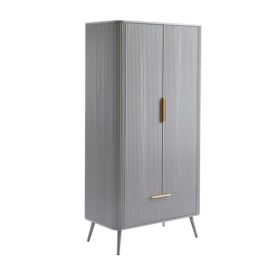 Furnitell 2 Door Wardrobe – Light Grey Solid Wood Finish | 5 Years Warranty