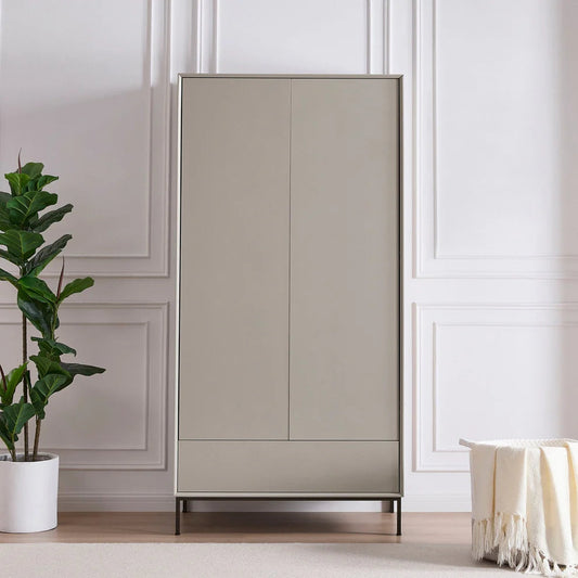 Furnitell 2 Door Wardrobe – Taupe Solid Wood Finish | 5 Years Warranty